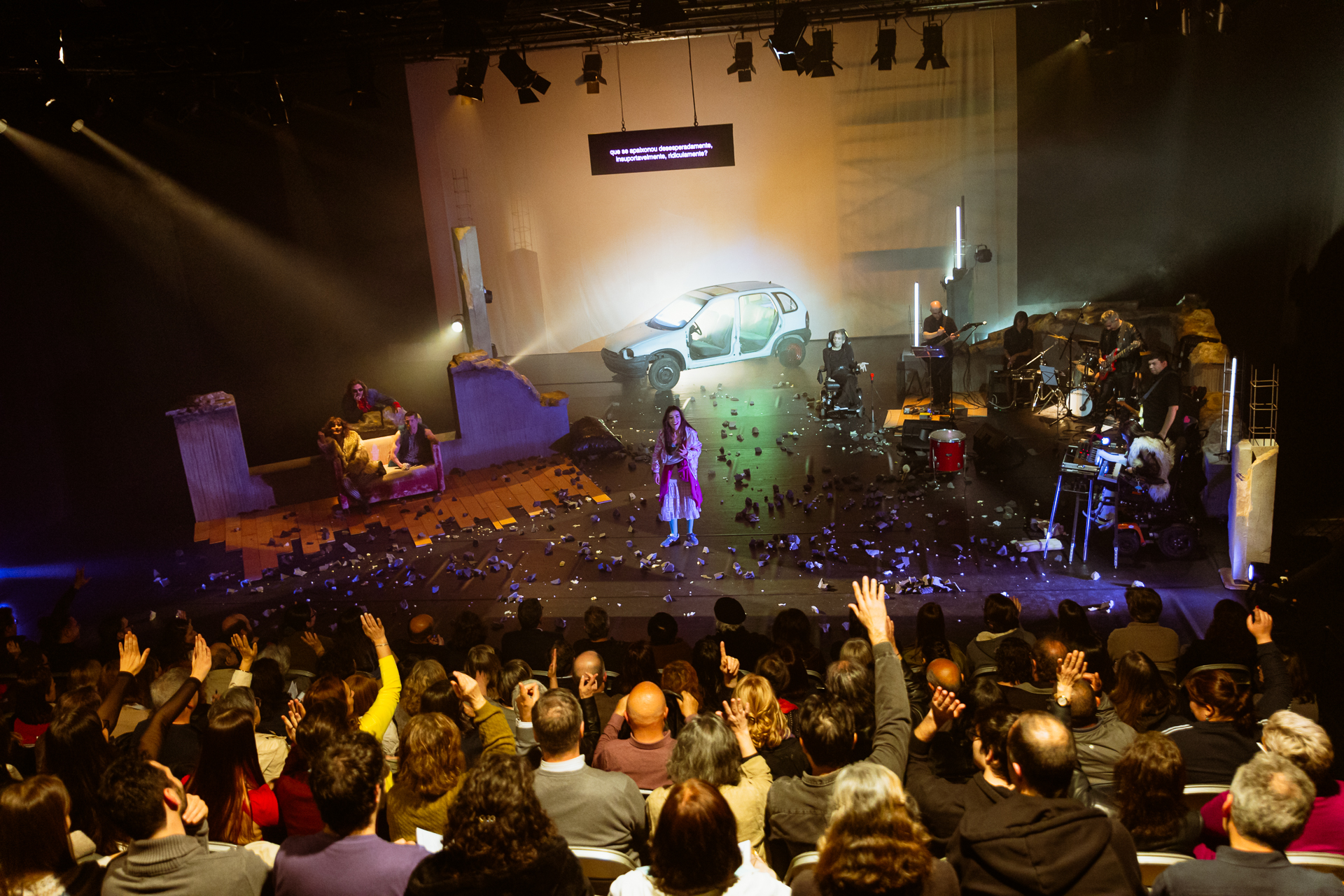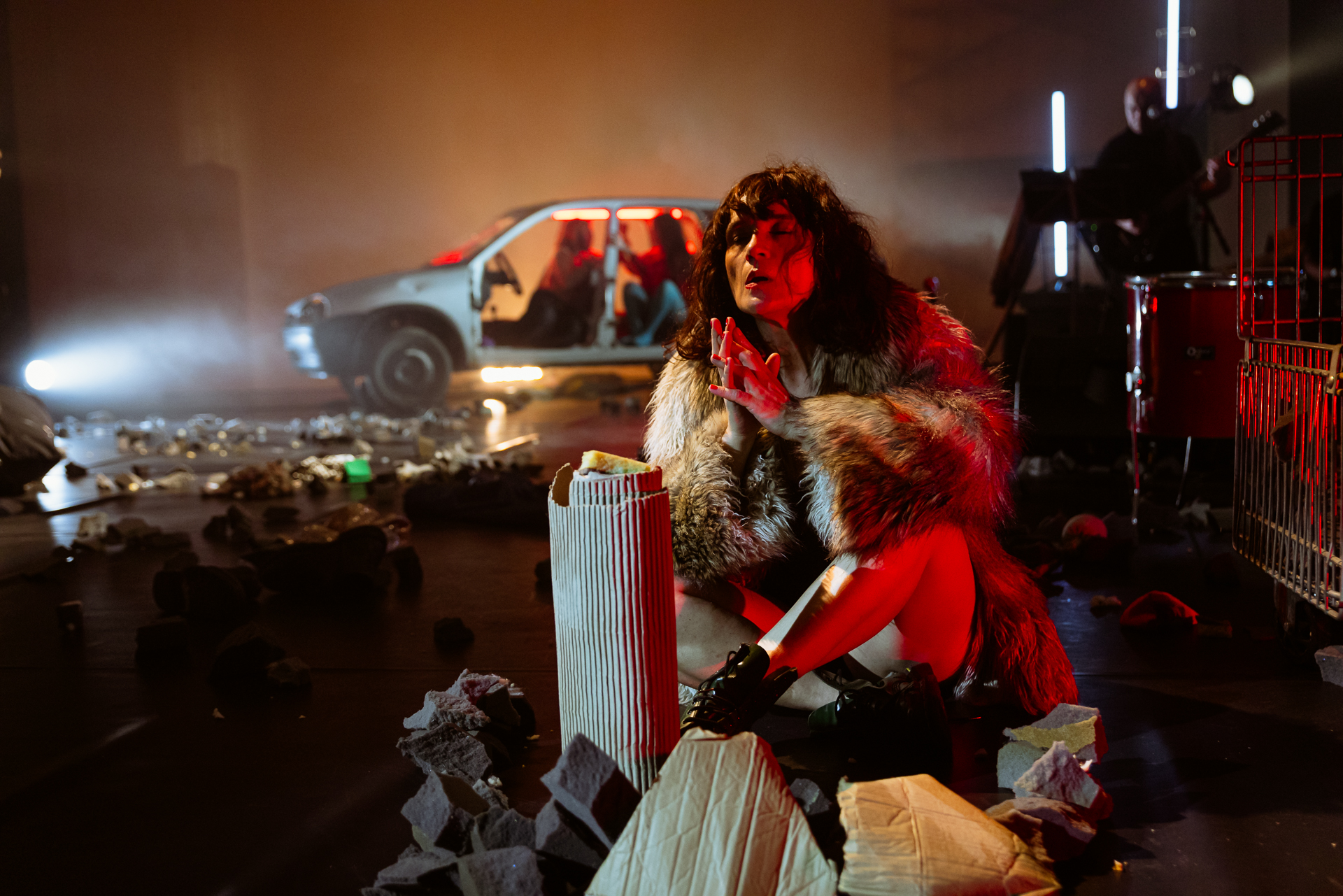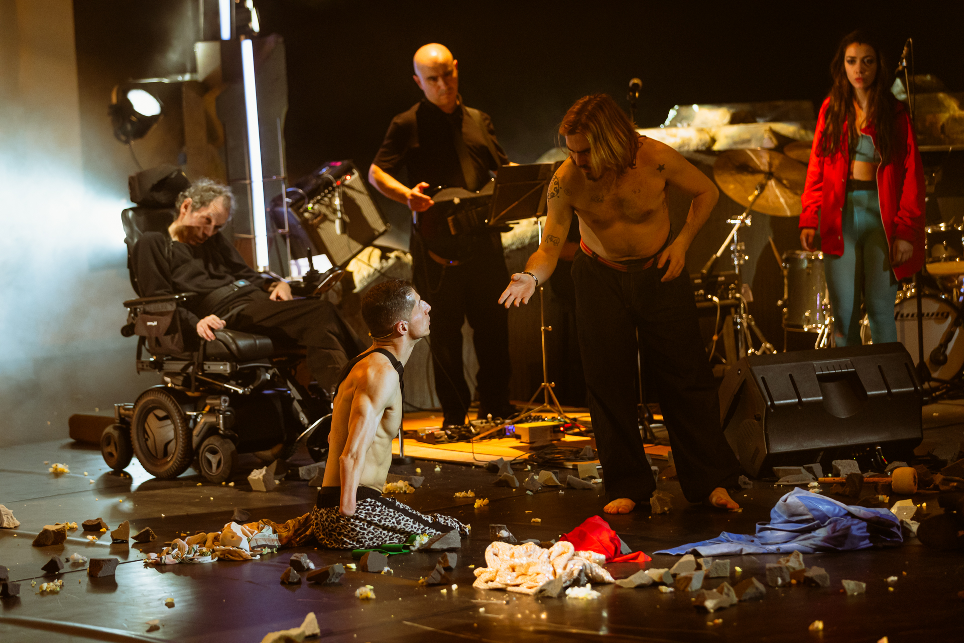 Ao longo deste tempo, fomos também colecionando clipes de telejornais, de comentadores e comentários, tweets e truths, reels e tiktoks e bem: quase que íamos tendo um ataque cardíaco. Por isso chamámos o dramaturgo Alex Cassal para dar corpo textual a este caos. Assim, foi sendo escrito o texto original que está na base de “96 Decibéis”. Um texto criado para estas pessoas com todas as suas especificidades, para ser feito neste local e neste tempo histórico. Como o tempo não está de modas, o cenário é pós-apocalíptico e de destruição. Contudo, acima da poeira e do ruído, surge uma certeza: mesmo em tempos de cólera, só o amor nos salvará porque acreditar que pode haver futuro é razão suficiente para amar sem reservas tudo aquilo que está por vir.