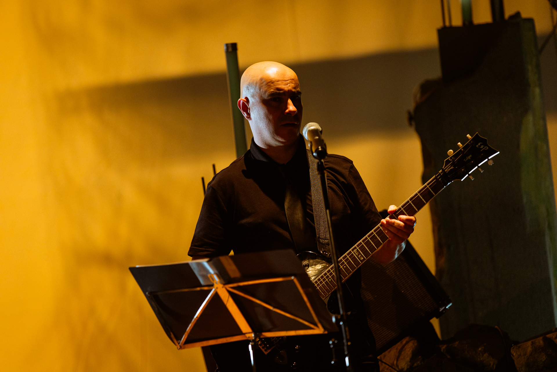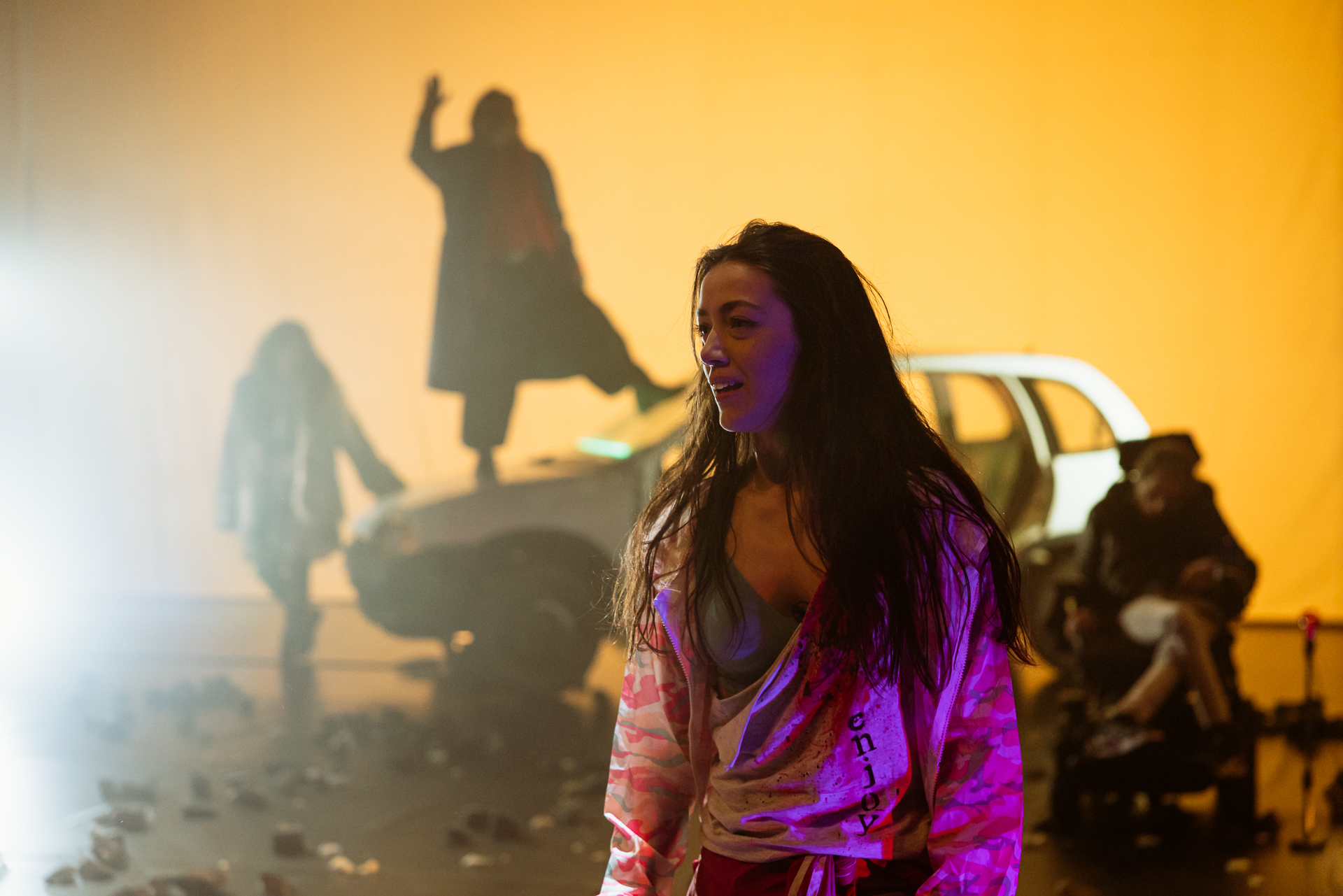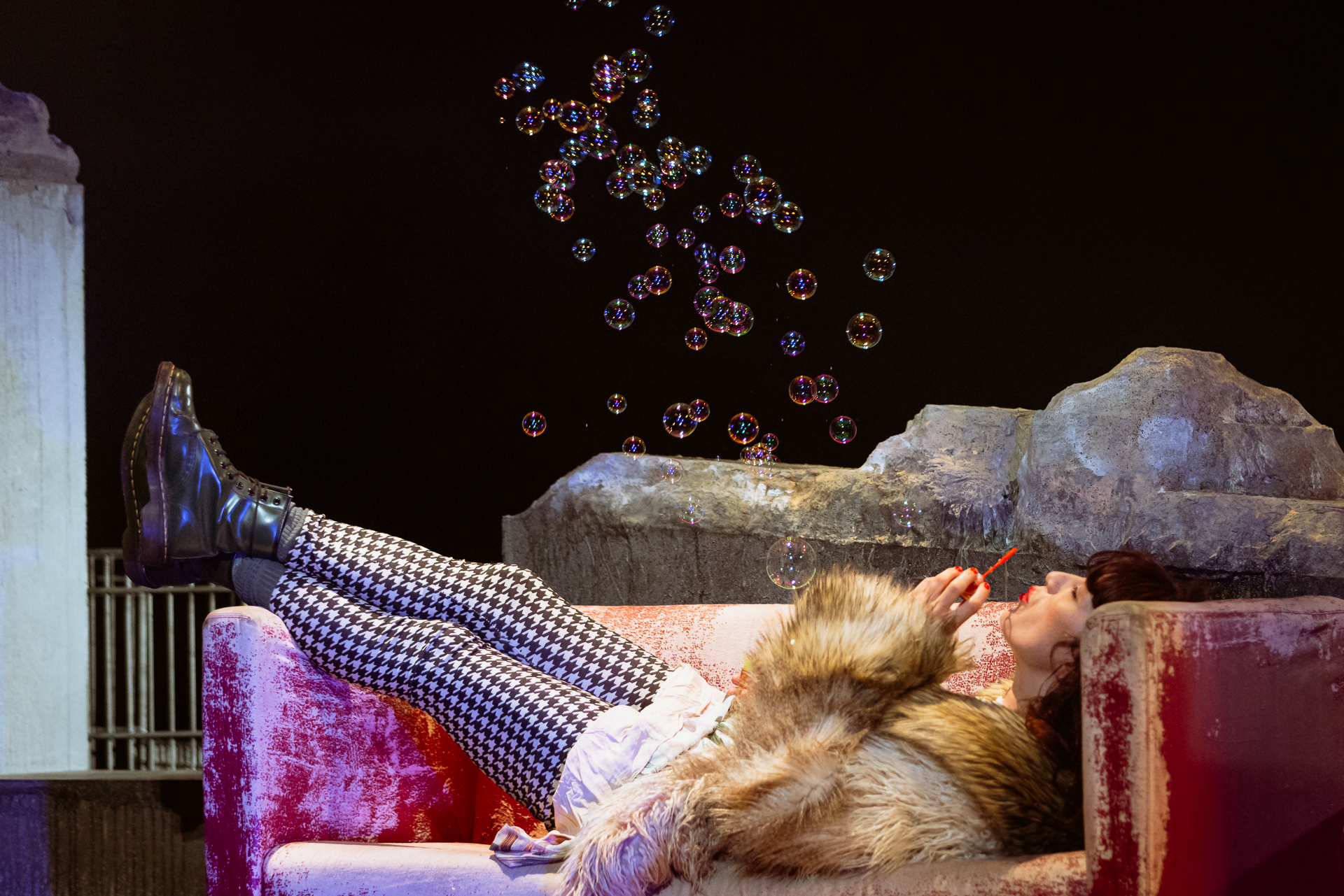 Ao longo deste tempo, fomos também colecionando clipes de telejornais, de comentadores e comentários, tweets e truths, reels e tiktoks e bem: quase que íamos tendo um ataque cardíaco. Por isso chamámos o dramaturgo Alex Cassal para dar corpo textual a este caos. Assim, foi sendo escrito o texto original que está na base de “96 Decibéis”. Um texto criado para estas pessoas com todas as suas especificidades, para ser feito neste local e neste tempo histórico. Como o tempo não está de modas, o cenário é pós-apocalíptico e de destruição. Contudo, acima da poeira e do ruído, surge uma certeza: mesmo em tempos de cólera, só o amor nos salvará porque acreditar que pode haver futuro é razão suficiente para amar sem reservas tudo aquilo que está por vir.