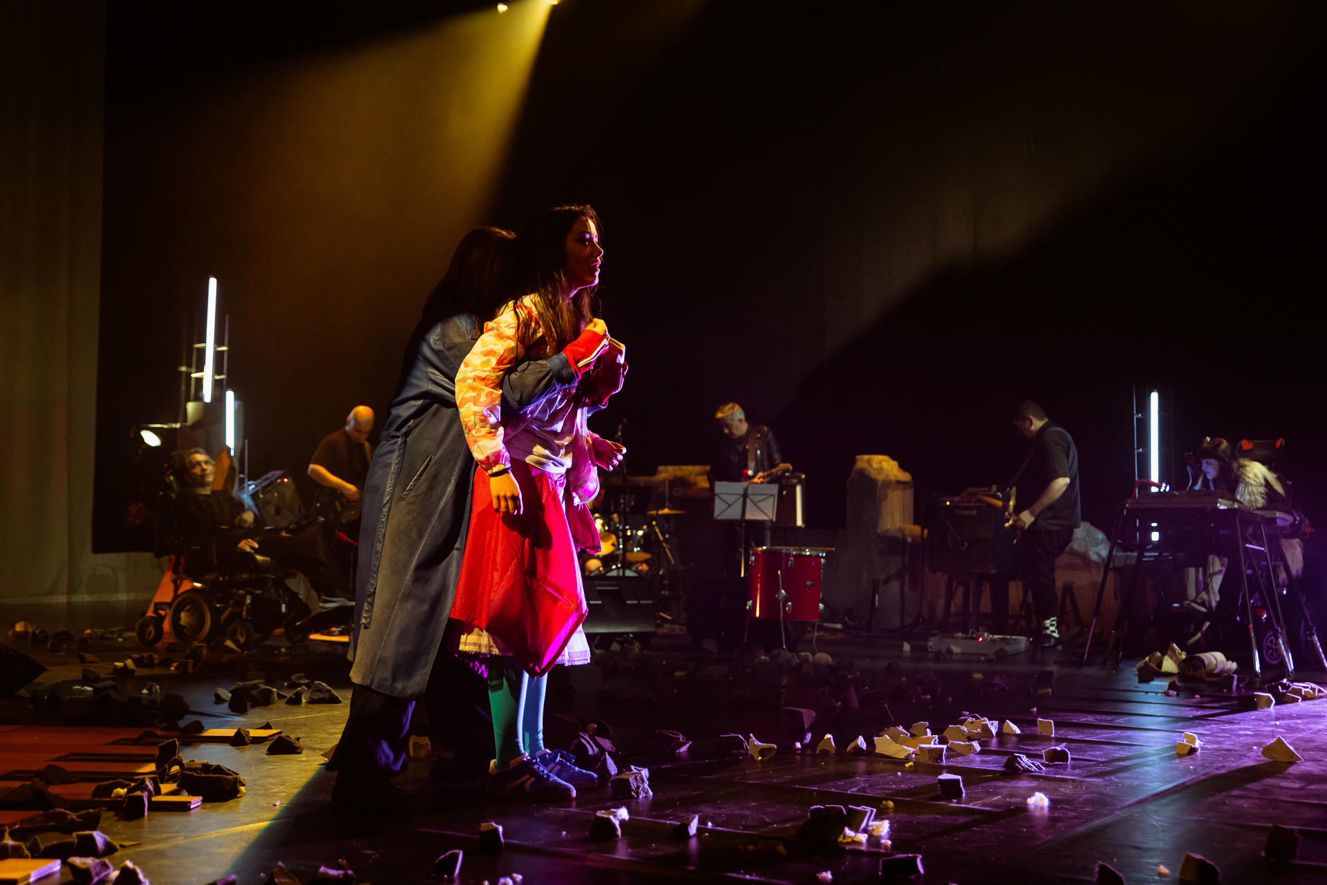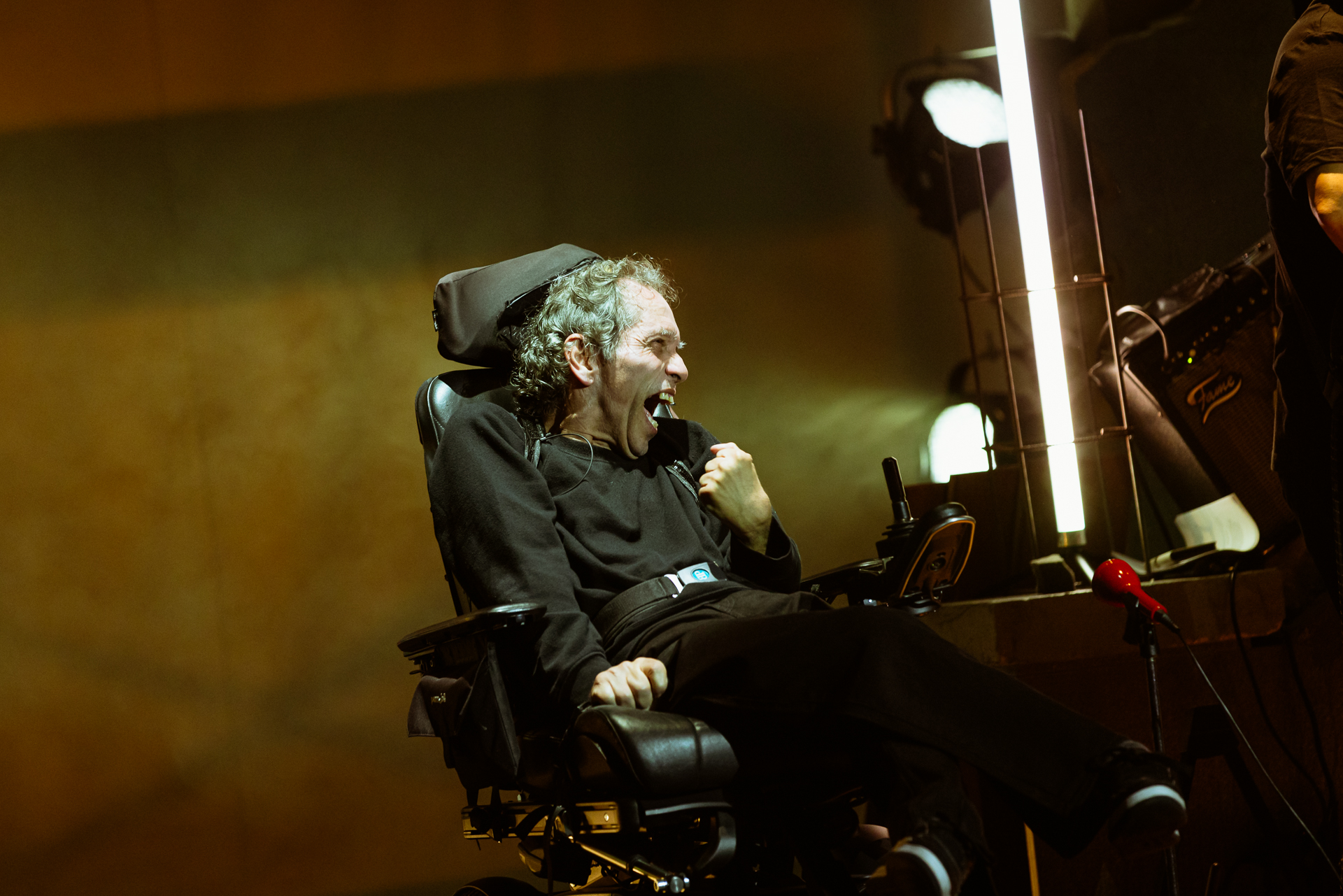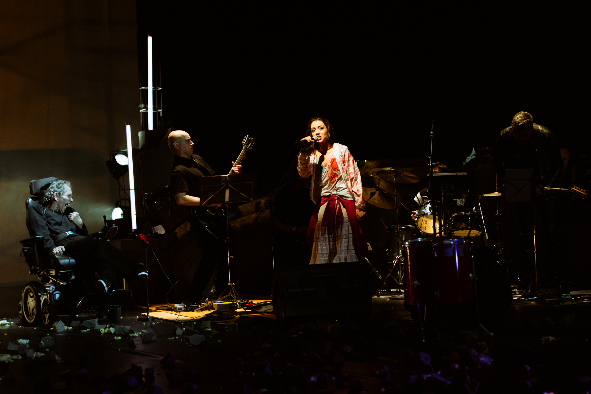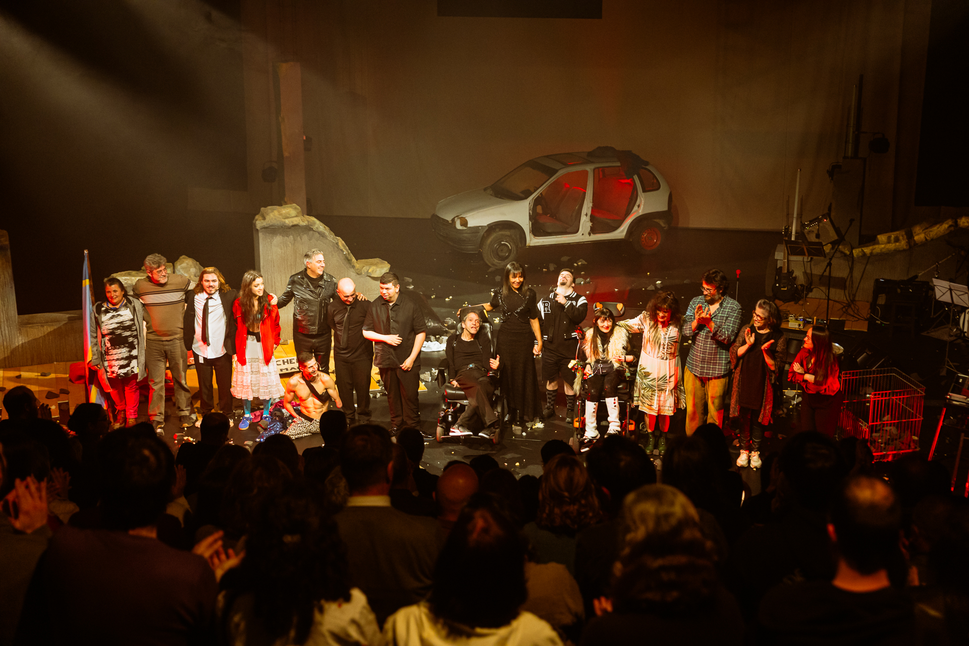 Desde 2024 que nos sentamos com Marco Paiva (diretor artístico da Terra Amarela) para nos conhecermos e para conversar sobre o espetáculo que queríamos fazer. Sabíamos que essa ideia – na altura, embrionária – teria de espelhar em palco as coisas que nos unem: a vontade de dar voz a uma pluralidade de existências, assente na ideia de que qualquer pessoa, independentemente da forma do seu corpo ou daquilo que é atestado sobre a sua capacidade, tem direito a estar num palco e numa plateia. Chegados a 2026, escolhemos trabalhar com intérpretes que dão sentido a este núcleo comum. Eva Tiago, Margarida Sousa, Paulo Azevedo e Vasco Seromenho – elenco que inclui artistas diversos, com mobilidade reduzida e surdez – metem os pés pelas mãos, falam com o corpo todo, cantam e riem, procurando resgatar a esperança ao darem voz a uma diversidade de gentes e de línguas.