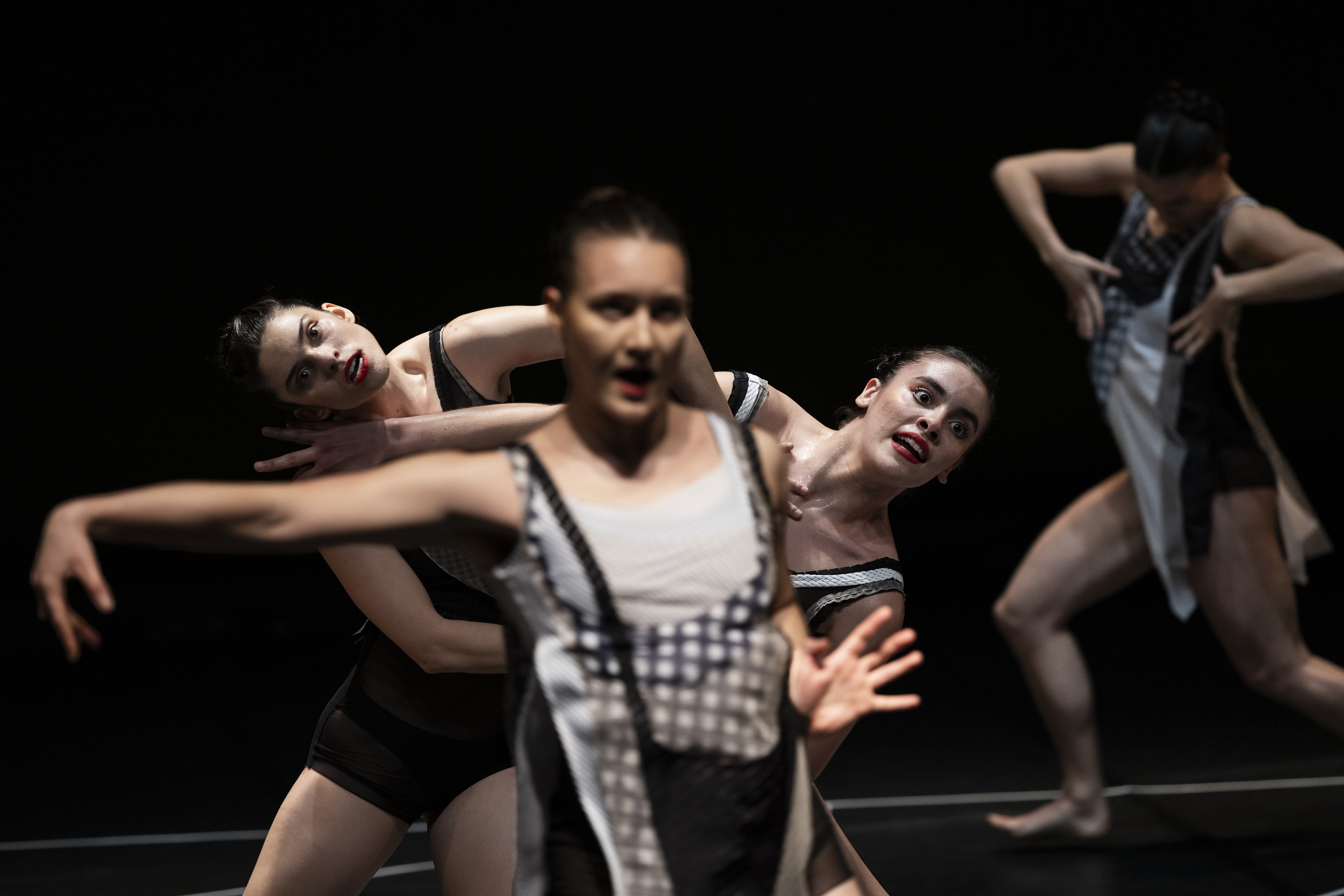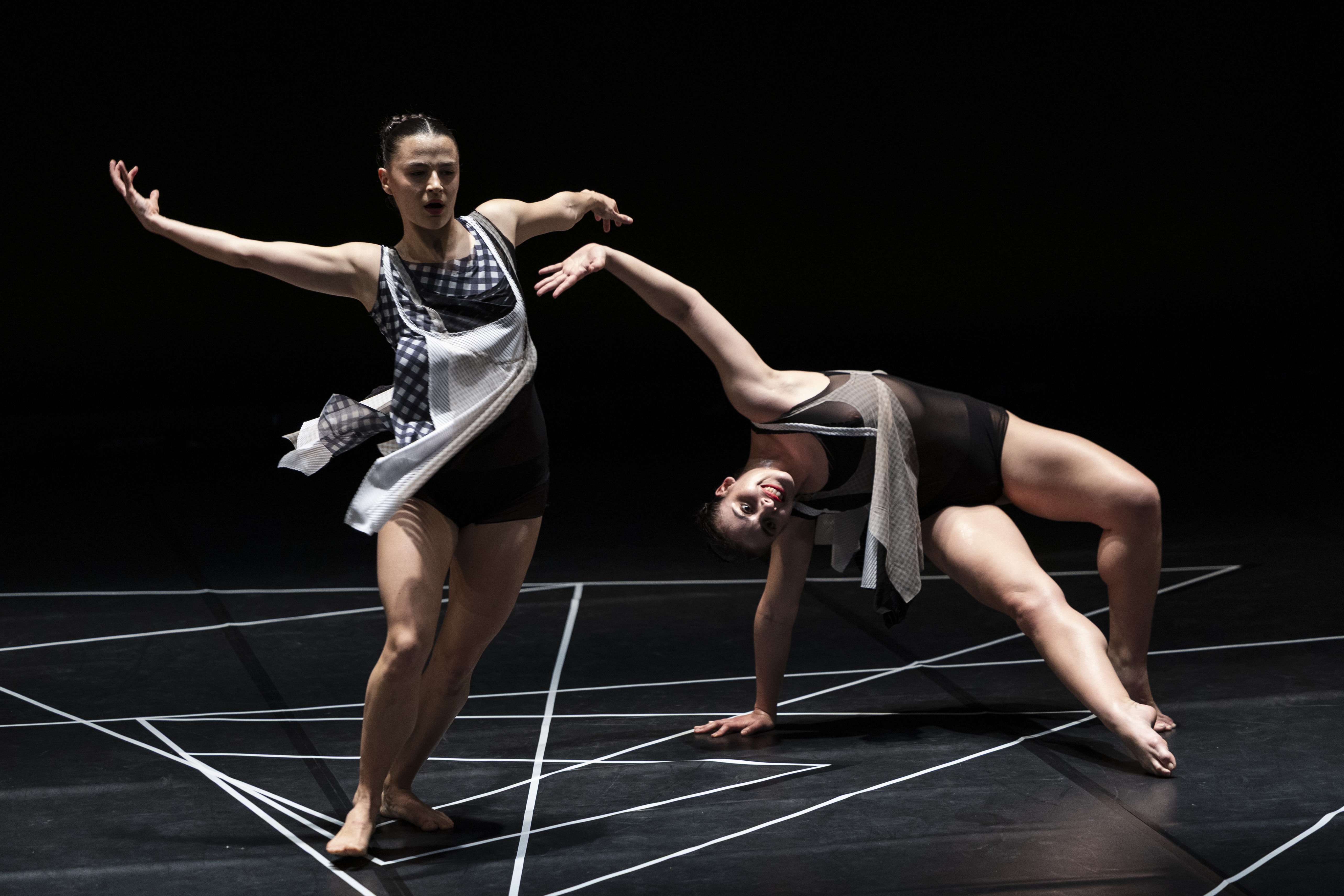 “Quando Vem a Taciturna de Limiar em Limiar o Presente Frágil” invoca as Mahavydias, deusas ferozes da sabedoria impura que dói e que ri, Fernando Pessoa delirando “Oriente a oriente do Oriente”, Camilo Pessanha exalando melancolia entre lençóis de linho, Al Berto destilando medo em éter poético, Paul Celan invocando a “Canção de uma Dama na Sombra”. A partir de conceitos filosóficos, a dupla de coreógrafos Joana von Mayer Trindade & Hugo Calhim Cristóvão confronta o frágil vazio do agora, o eterno conflito entre passado, presente e futuro que, de encruzilhada em encruzilhada, confronta e excita a finitude. Dança-se entre limiares – entre ser e não-ser, desejo e vazio, vida e morte, a transitoriedade uma carne amada e estilhaçada que revela a beleza do caos que nunca volta para trás. De limiar em limiar, a dança cria momentos irrepetíveis não canceláveis pelo terror, metamorfoseando urgência apocalíptica em sobrevivência.